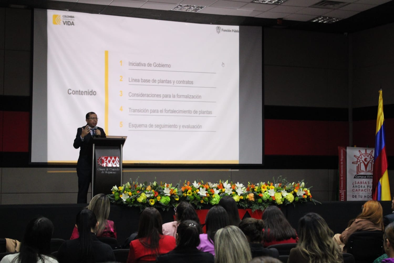 La tercera intervención fue para el Dr. Francisco Alfonso Camargo Salas, Director de Empleo Público del Departamento Administrativo de la Función Pública con el desarrollo del tema “Formalización Laboral”, con una agenda amplia en dónde explicó la línea del gobierno y da un panorama a nivel nacional frente a este tema.